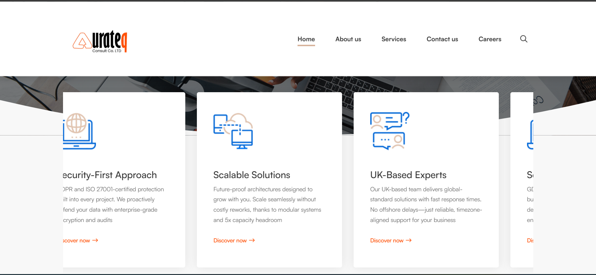 The Aurateq Website is a professional, business-oriented digital platform built to present Aurateq’s core identity as a UK-based IT services provider delivering secure, scalable, and custom technology solutions.